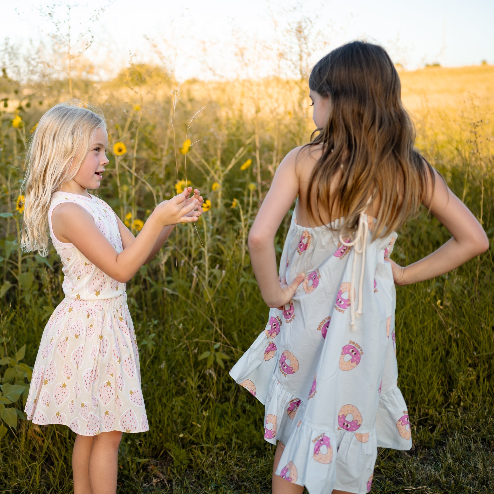 Indulge your sweet tooth with our Donuts UB Dress! Made from light, breathable fabric and featuring comfortable straps, this dress is the perfect choice for casual days. The quirky donut print adds a playful touch, and pairs perfectly with our PH Basic Sandals and Patched Tote. So go ahead and treat yourself to this deliciously cute outfit.