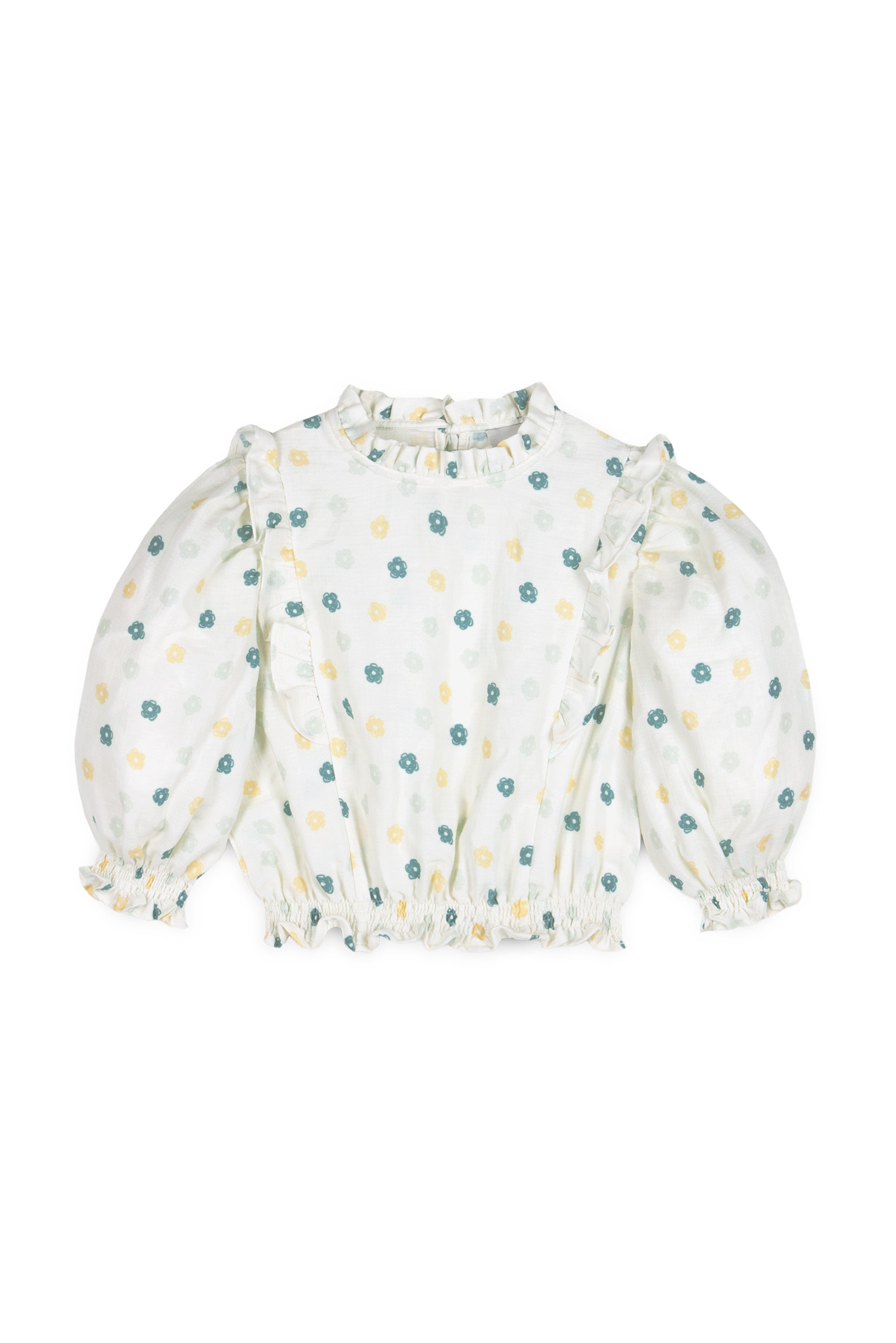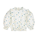 Mia Muslin Flower Blouse - Cream/Green Lilly