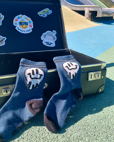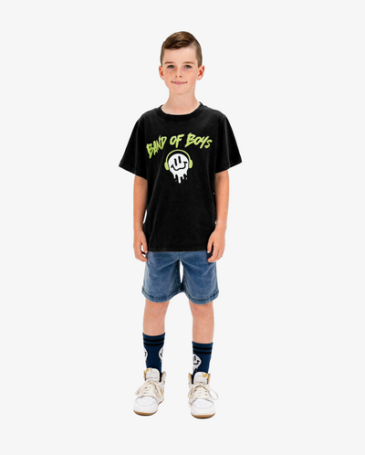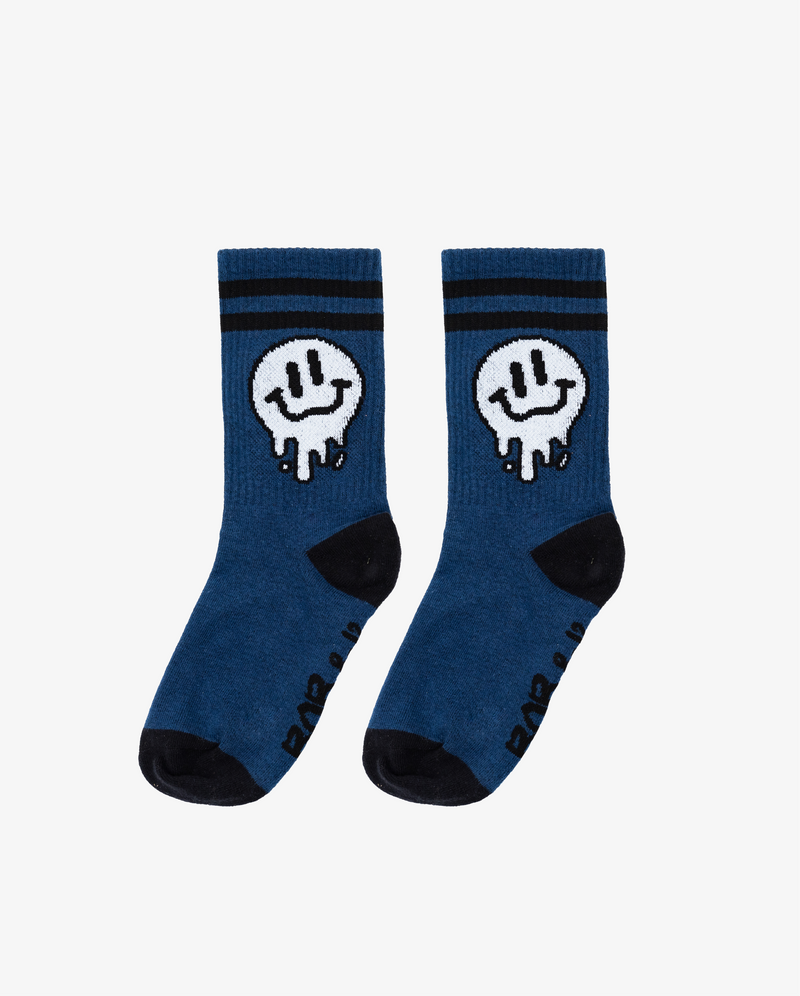 The Band of Boys Navy Drippy Smiles Socks go with everything! Designed in mid-weight cotton elastane, they’re super stretchy, comfy to wear, and easy for minis to get on and off themselves.