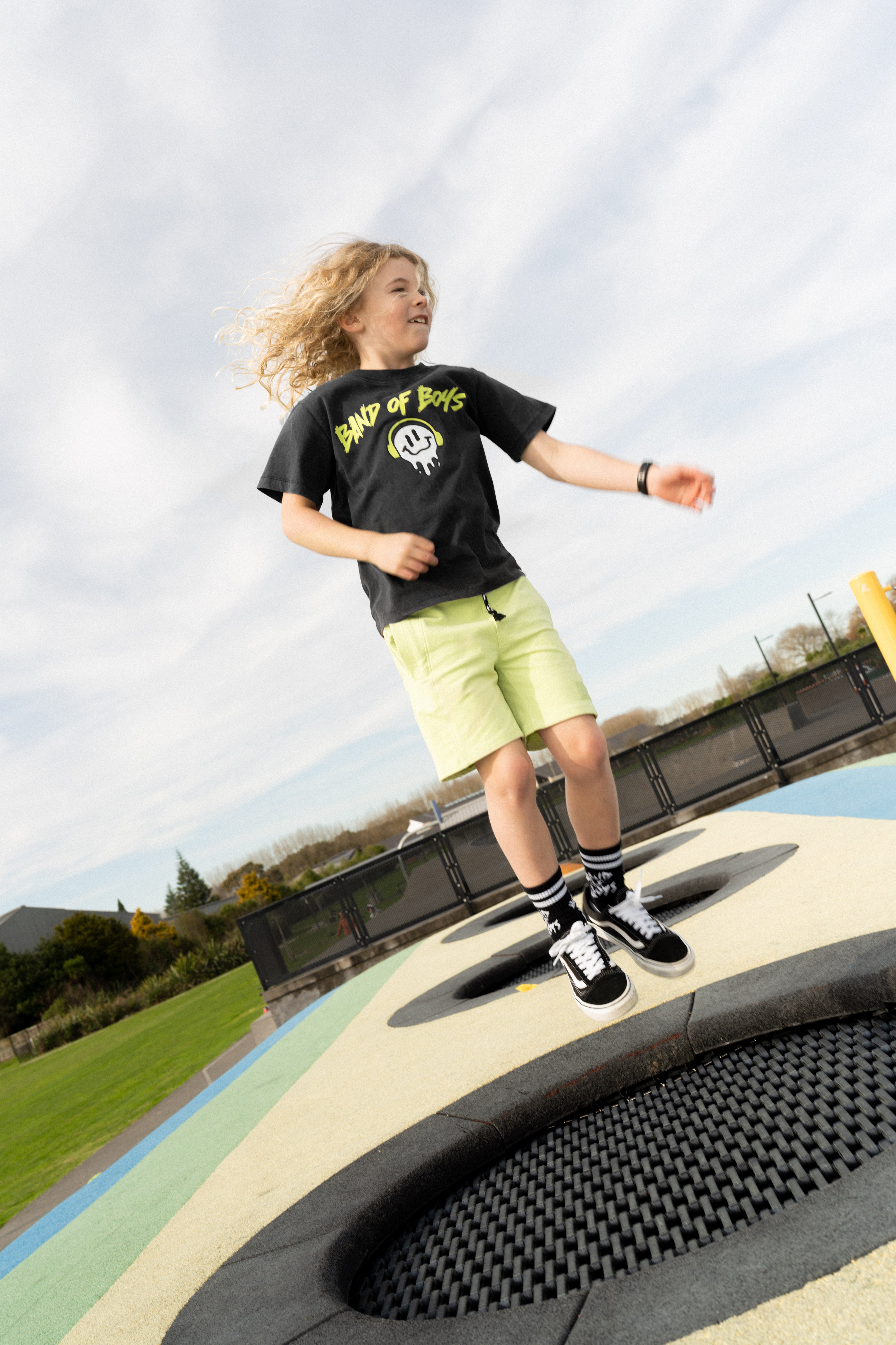 The Band of Boys Black Wash Smile Tee has an effortless vibe – soft jersey cotton, garment washed for a smoother hand-feel, and finished with our signature drippin’ smile guy rocking headphones.