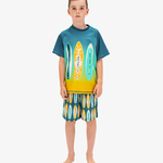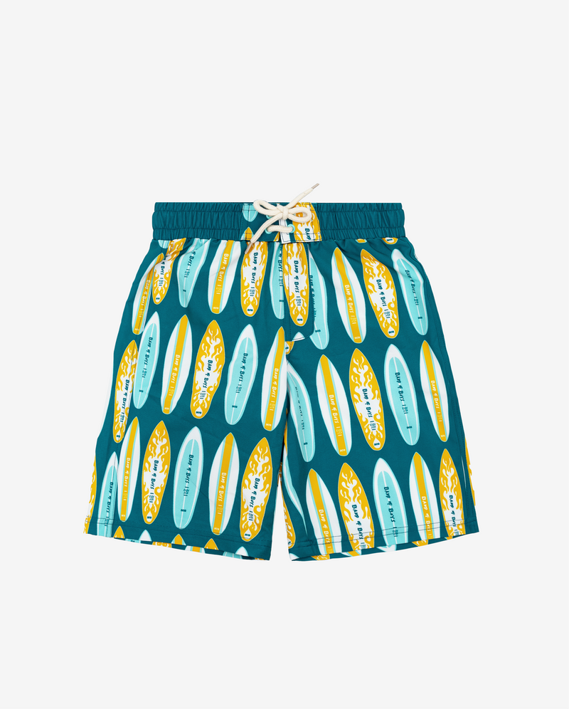 The Band of Boys Surfs Up Board Shorts bring the fun with a full dose of sun-safe style. Covered in a repeat surfboard print and made from lightweight, quick-dry fabric, these boardies are built for beach days, pool bombs, and everything in between.